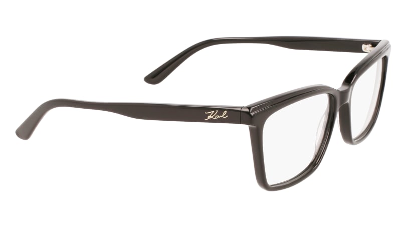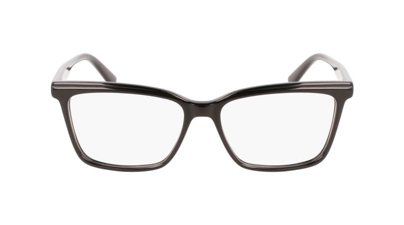 Montatura in acetato , con taglio dritto e deciso con lavorazione sul frontale .