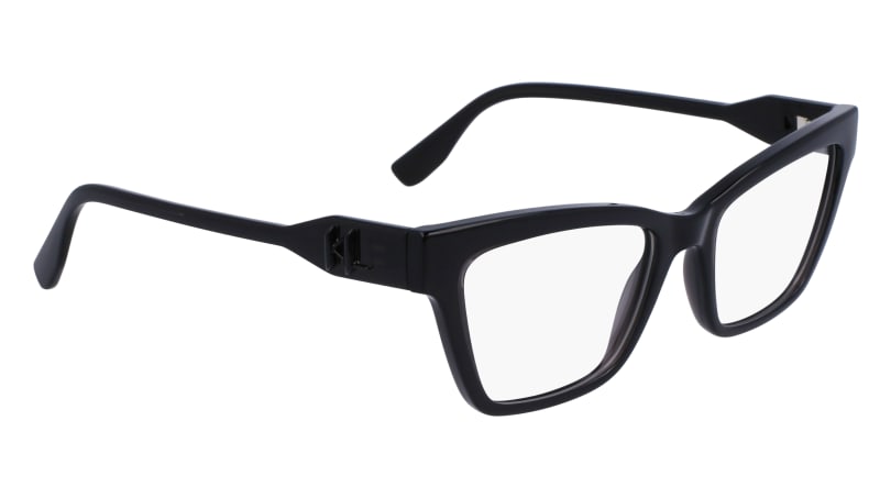Montatura in materiale Bio grigio scuro, molto leggera con linee decise e a gatto . Aste con logo in rilievo .